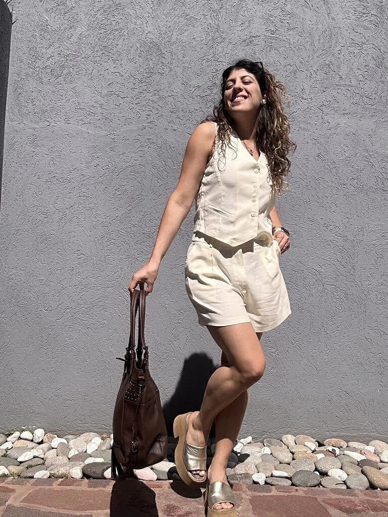 Descubrí el Chaleco Kaia de lino duro, una prenda imprescindible para elevar tu estilo con sofisticación. Su escote pico y los recortes Leighton aportan un diseño único y moderno, mientras que los prácticos bolsillos ojal delanteros suman funcionalidad. Cerrado con botón de pasta, combina comodidad y elegancia para cualquier ocasión. Ideal para quienes buscan un look fresco y distinguido. ¿Querés asesoramiento con talles? Escribinos por WhatsApp.